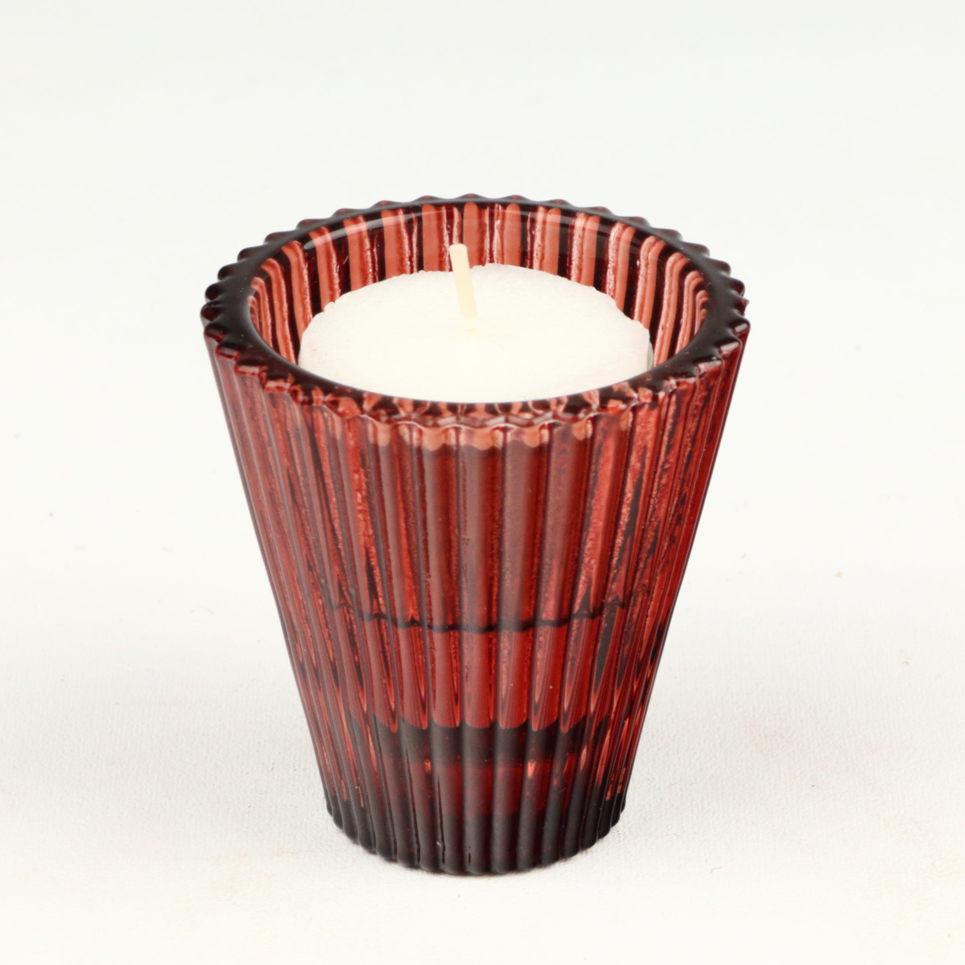 This elegant two-way ribbed candlestick in a rich bordeaux seamlessly transitions between dinner candles and tea lights, making it a versatile addition to your home. The textured ribbed design creates subtle shadows and visual interest, while its dual-end construction allows you to customise your display based on occasion and mood. Handmade, each piece is unique.