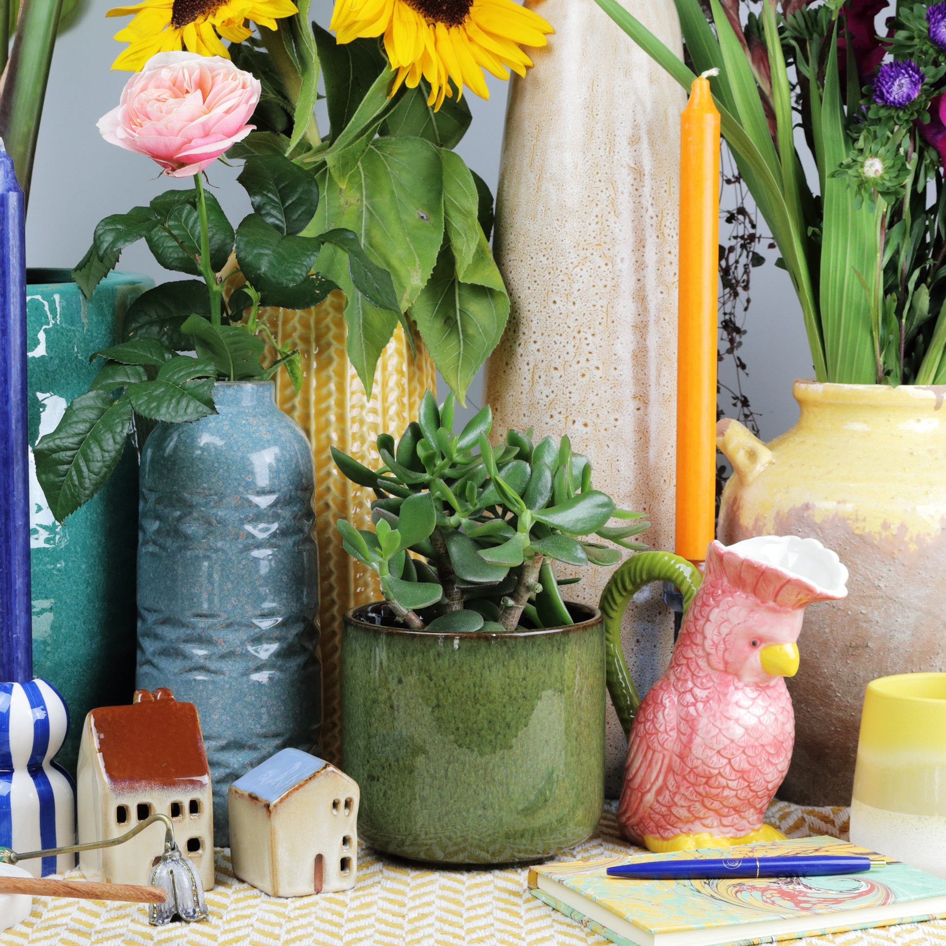 This is a lovely plant pot in a satisfyingly rich forest green glaze, with black and brown speckling throughout. The main body is cylindrical, with a light curve in at the base. The glaze is smooth and bold, making it a standout piece for the home. Sealed, no drainage holes. Handmade, each piece is unique. Available two sizes.