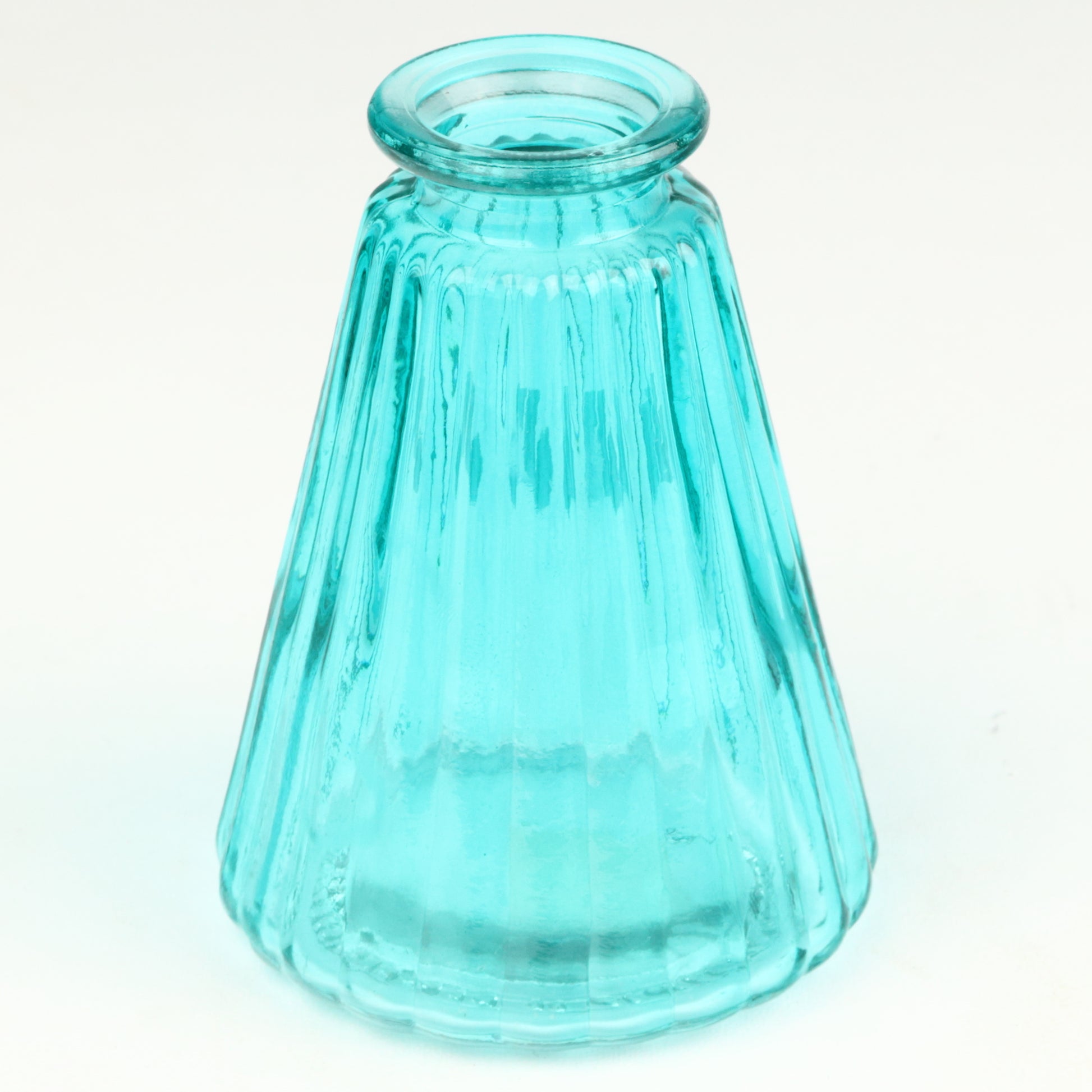 This candlestick's distinctive ribbed glass texture catches light beautifully, creating an elegant focal point for any room. The refined cone silhouette brings contemporary sophistication to traditional candlelit ambiance. A versatile piece that complements both modern and classic interiors. Handmade, each piece is unique.