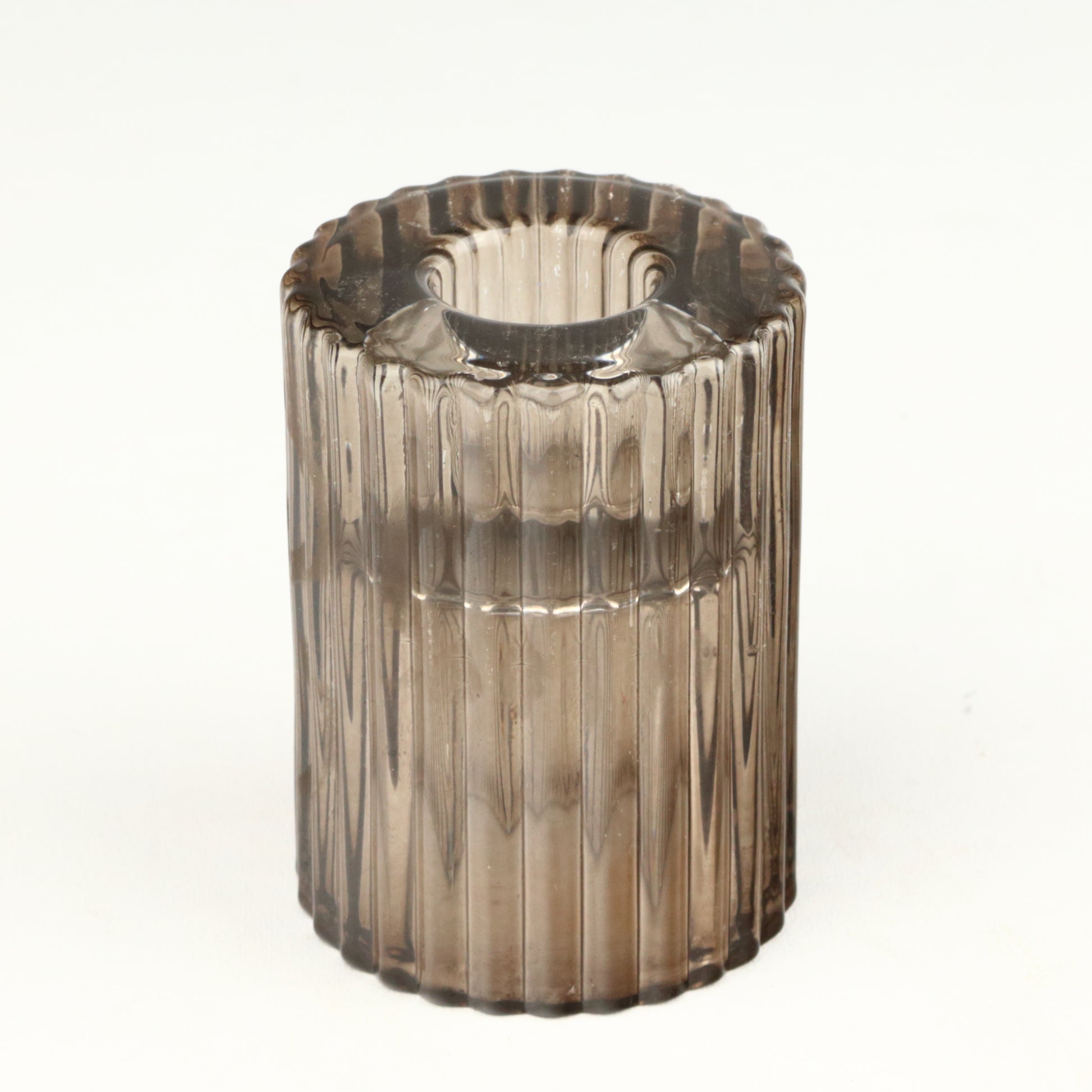 This versatile piece accommodates both dinner candles and tea lights, making it an adaptable addition to any table setting. The clean ribbed finish complements contemporary and classic interiors alike, creating ambient lighting for intimate dinners or quiet evenings. Handmade, each piece is unique.