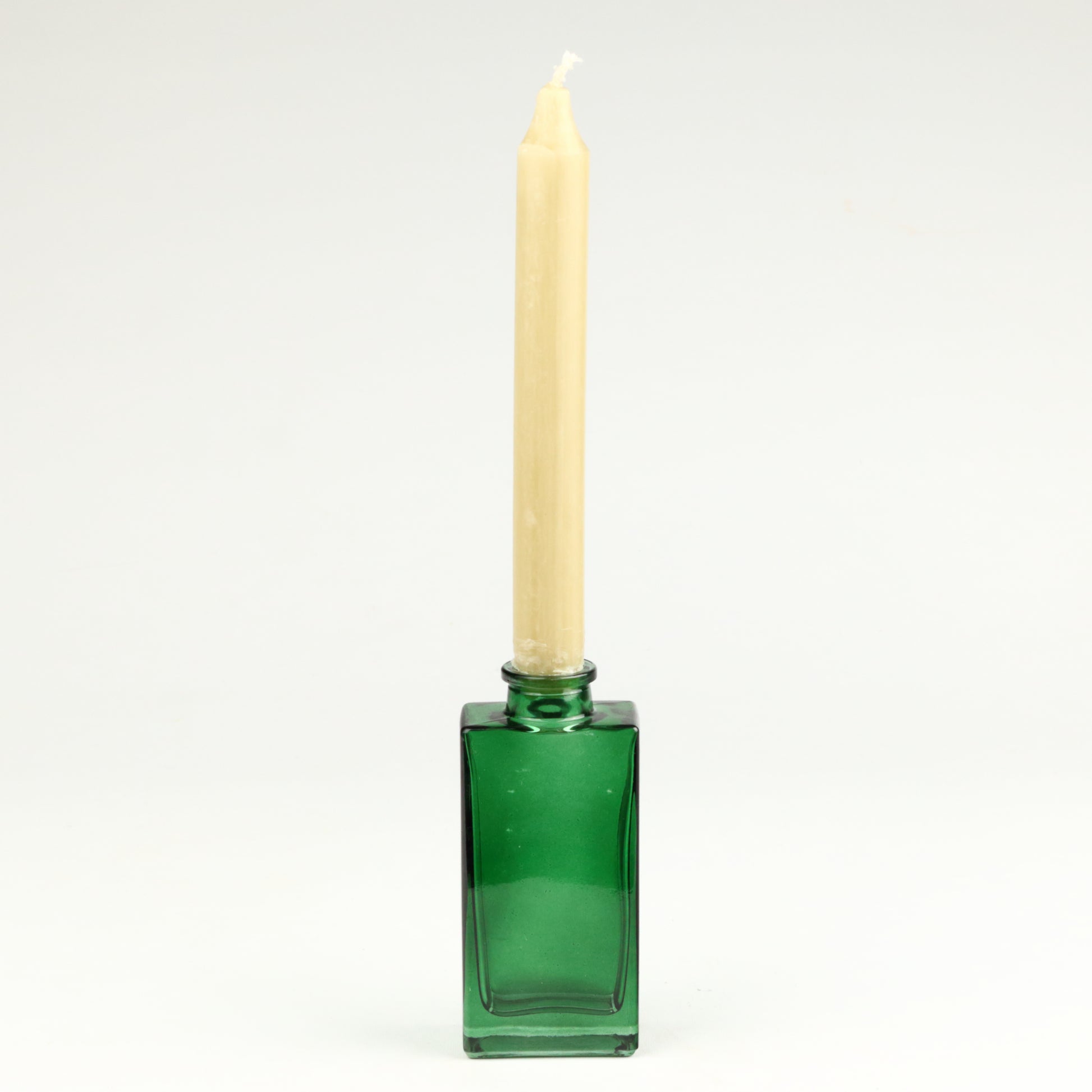 This elegant emerald glass candlestick showcases clean architectural lines and a bold cuboid silhouette. Crafted from premium glass, it delivers both visual impact and practical function. Handmade, each piece is unique.