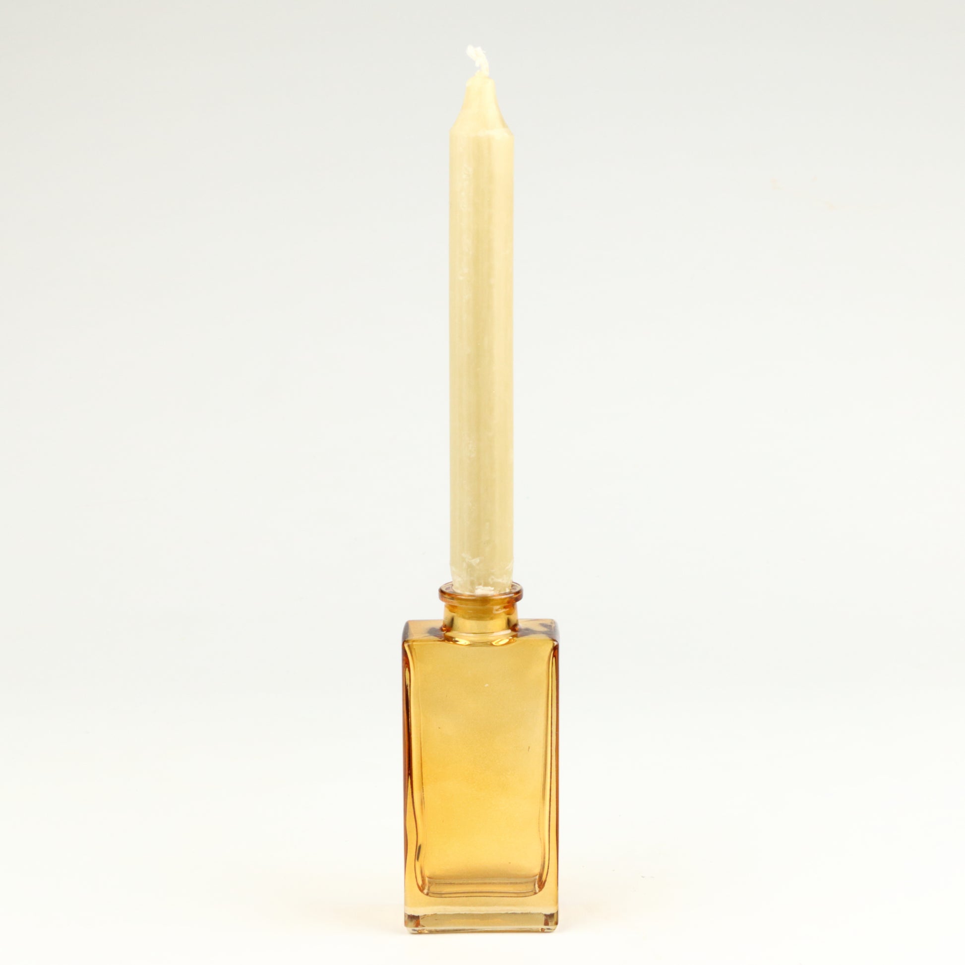 This elegant emerald glass candlestick showcases clean architectural lines and a bold cuboid silhouette. Crafted from premium glass, it delivers both visual impact and practical function. Handmade, each piece is unique.