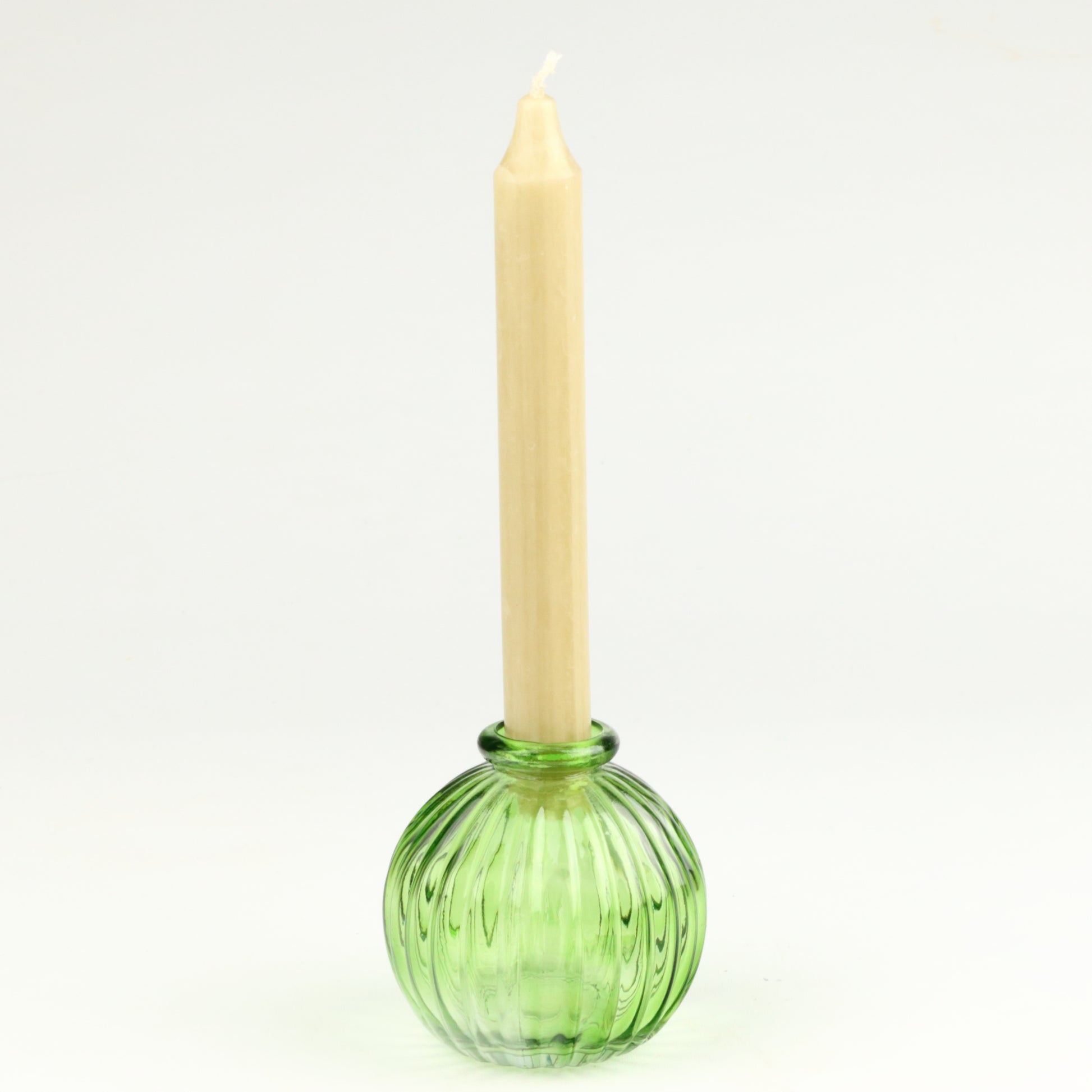 Lime Ribbed Sphere Candlestick