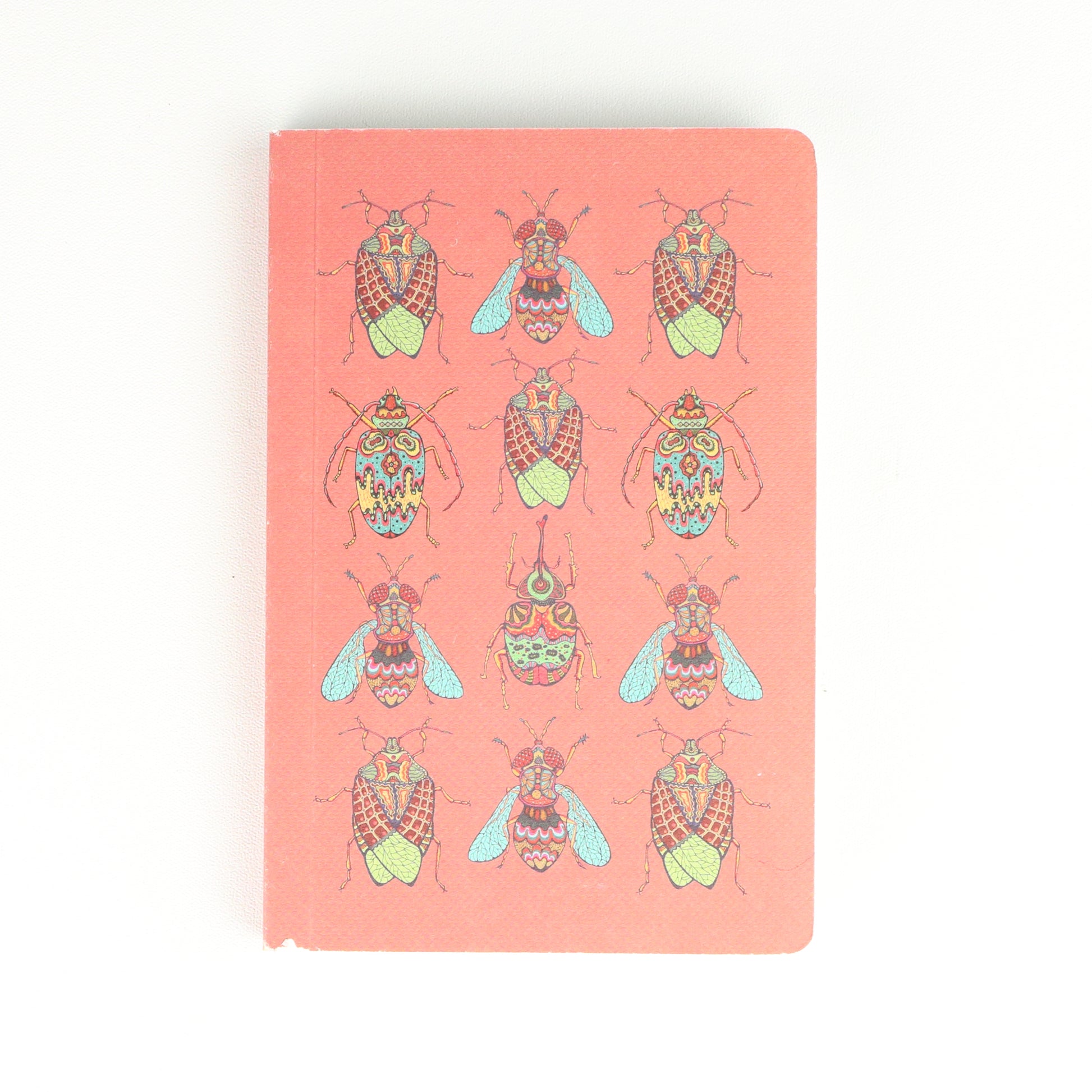 A charming pocket notebook, with a beautiful beetles design spearheading the book. The pages are in three different colours, to help with sorting your thoughts as you wish. Handmade, each piece is unique.