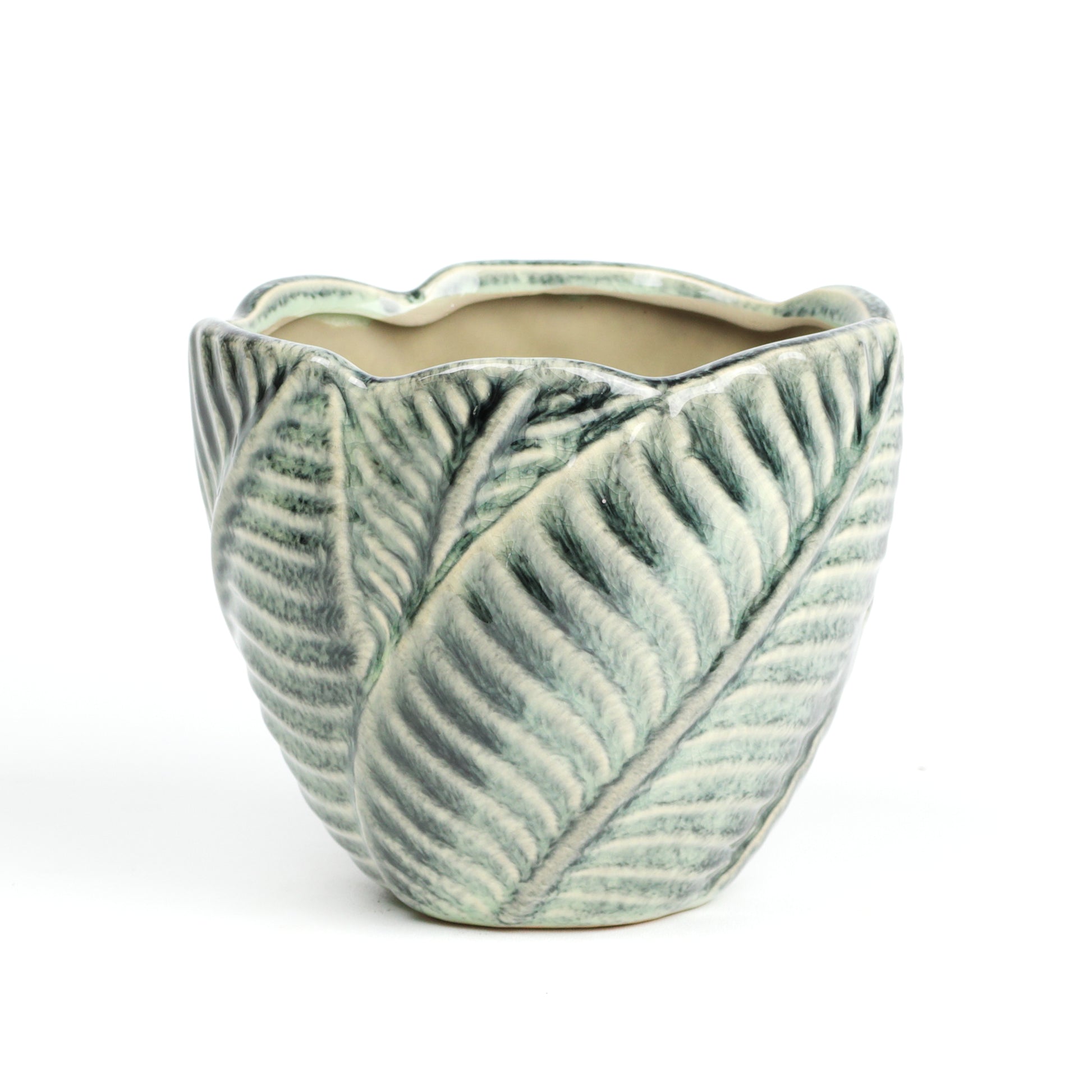 Inspired by nature, this plant pot is the perfect companion to a leafy friend. The design is inspired from the foliage of exotic plants, with textured three dimensional ribbing throughout. Fully glazed with a bright and darker hues of green, to add depth to its aesthetic. Sealed, no drainage holes. Available in three sizes.