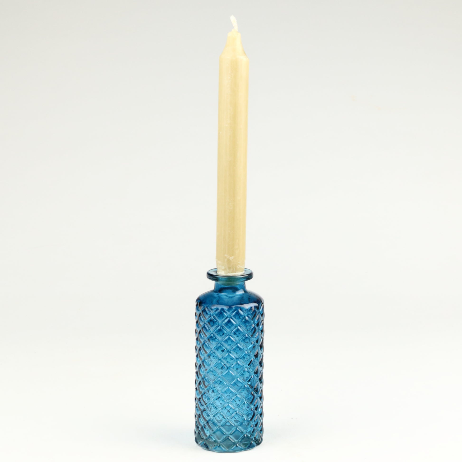Crafted to accommodate standard sized candles, this charming bottle combines refined proportions and thoughtful construction, to make it an ideal choice for layering ambient warmth into dining rooms, living spaces, or seasonal displays. Handmade, each piece is unique.