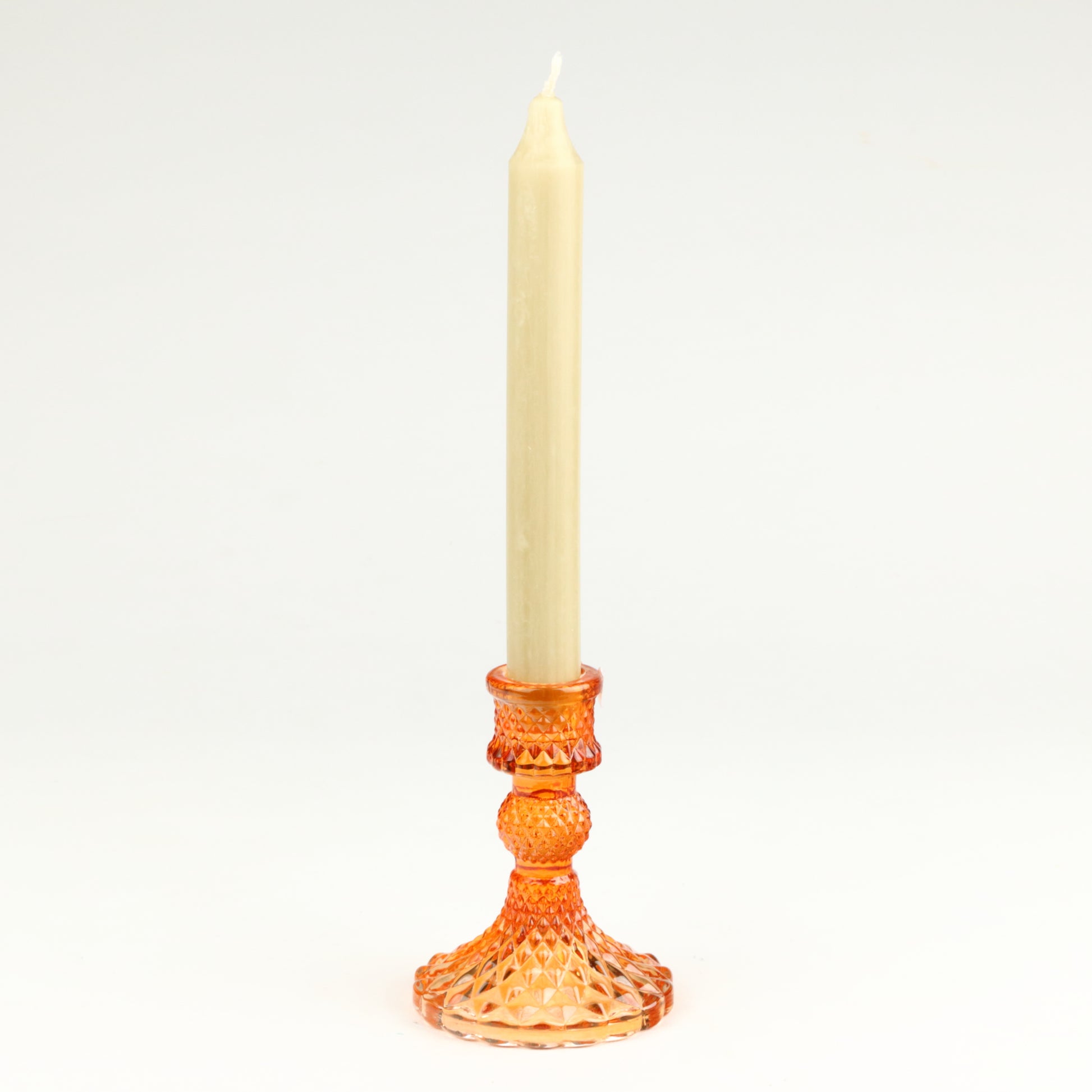This charming glass candlestick holds one standard size candle and will make the perfect addition to your dinner table or wherever you fancy. Handmade, each piece is unique.