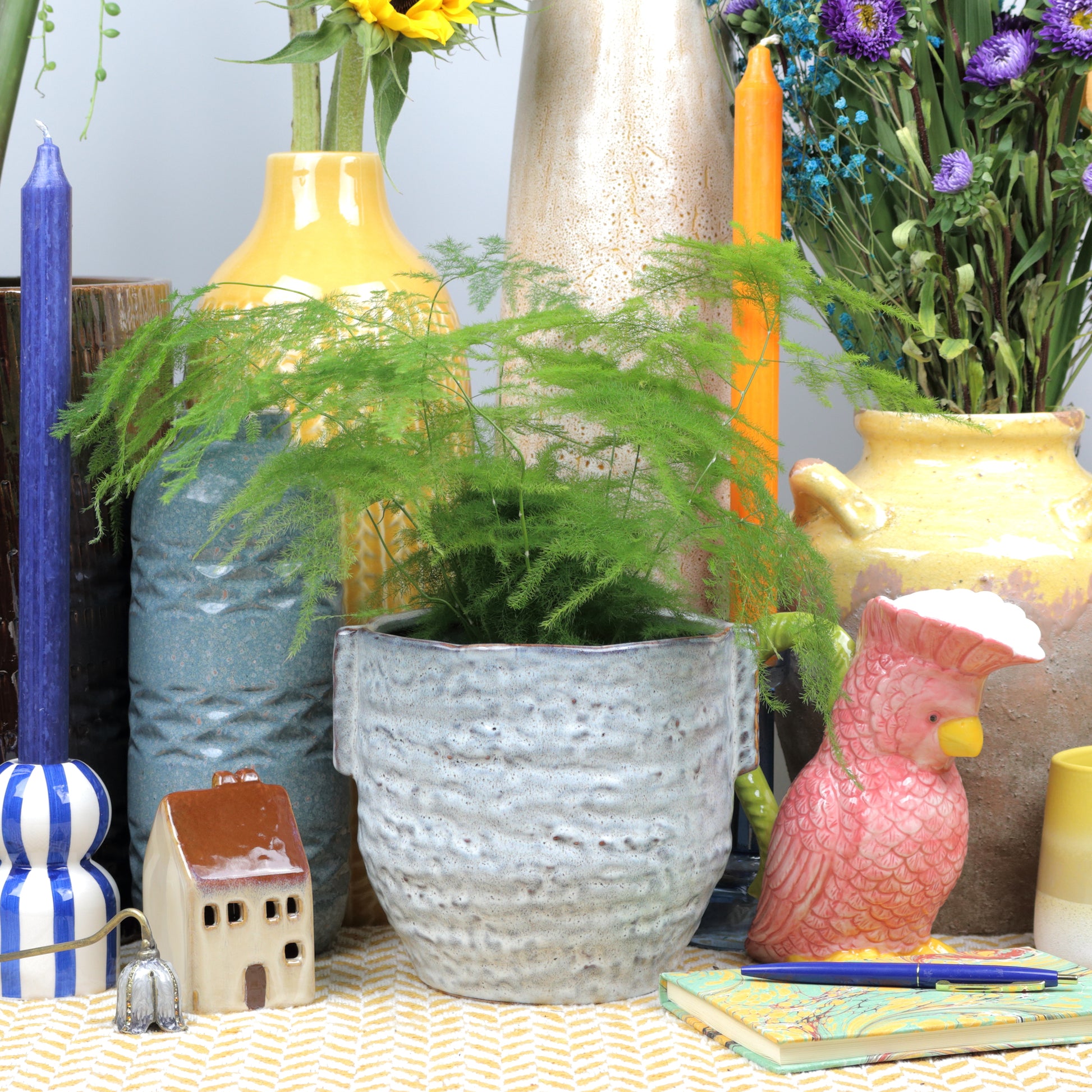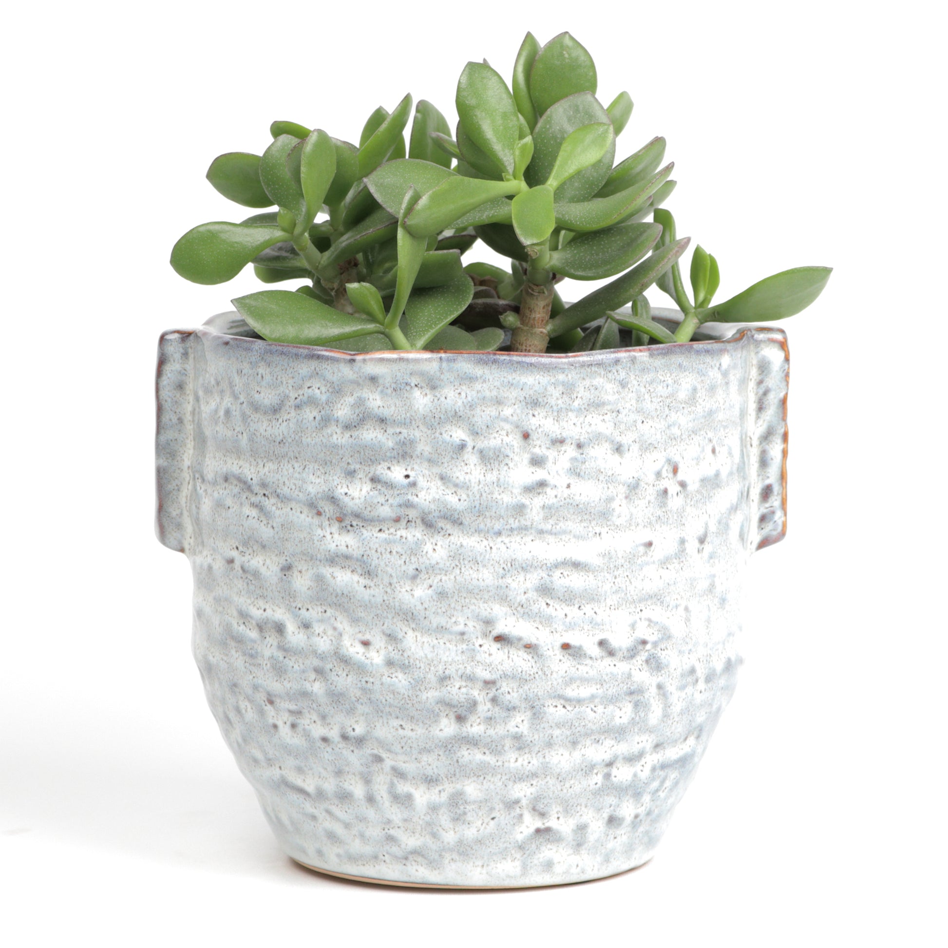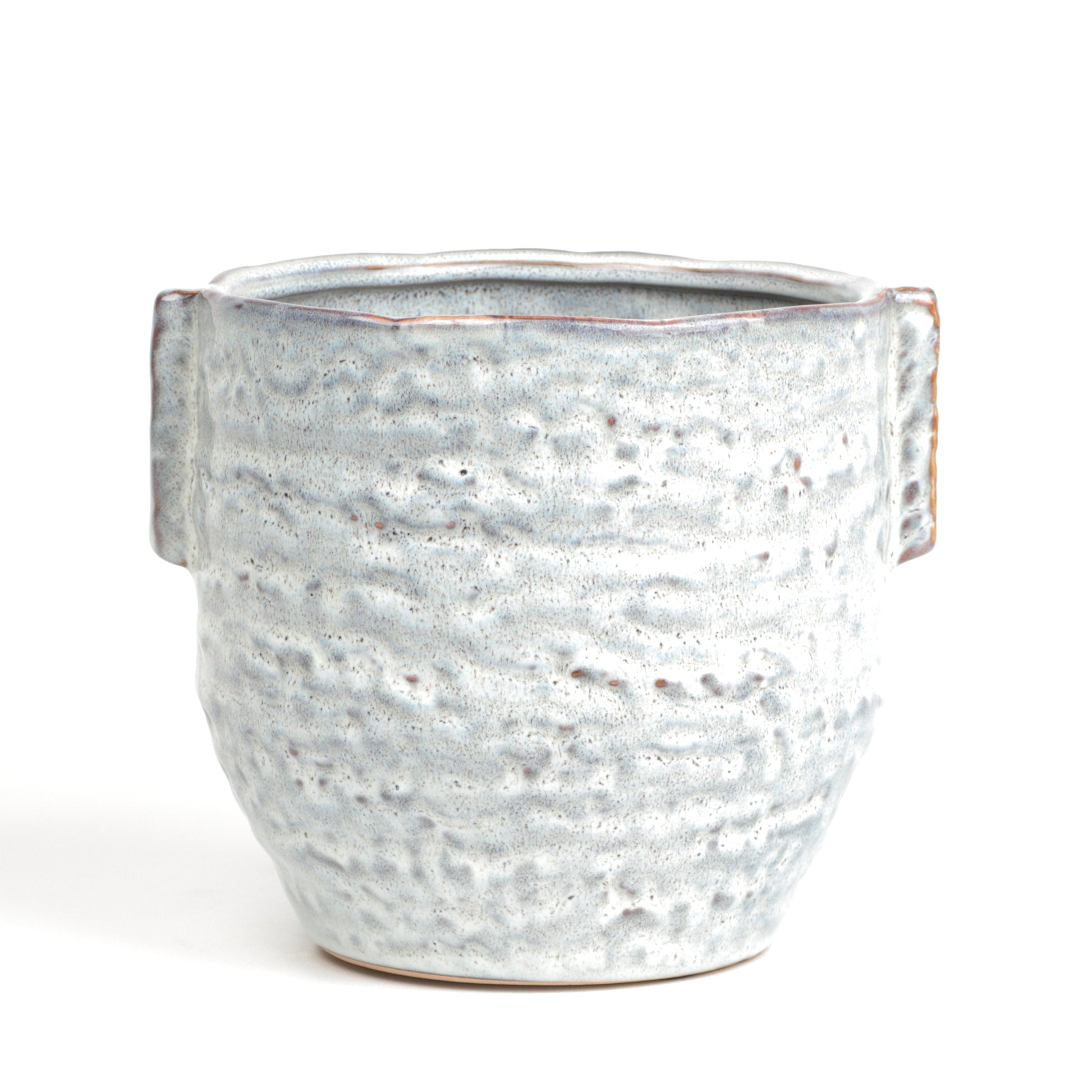 A beautifully handcrafted pot with a soft, speckled glaze in cool grey tones. The organic texture and slightly uneven rim give it a rustic, artisanal feel, while the subtle brown edging adds warmth and definition. A unique piece that captures the charm of hand-thrown pottery. Handmade, each piece is unique. Sealed, no drainage holes. Available in two sizes.