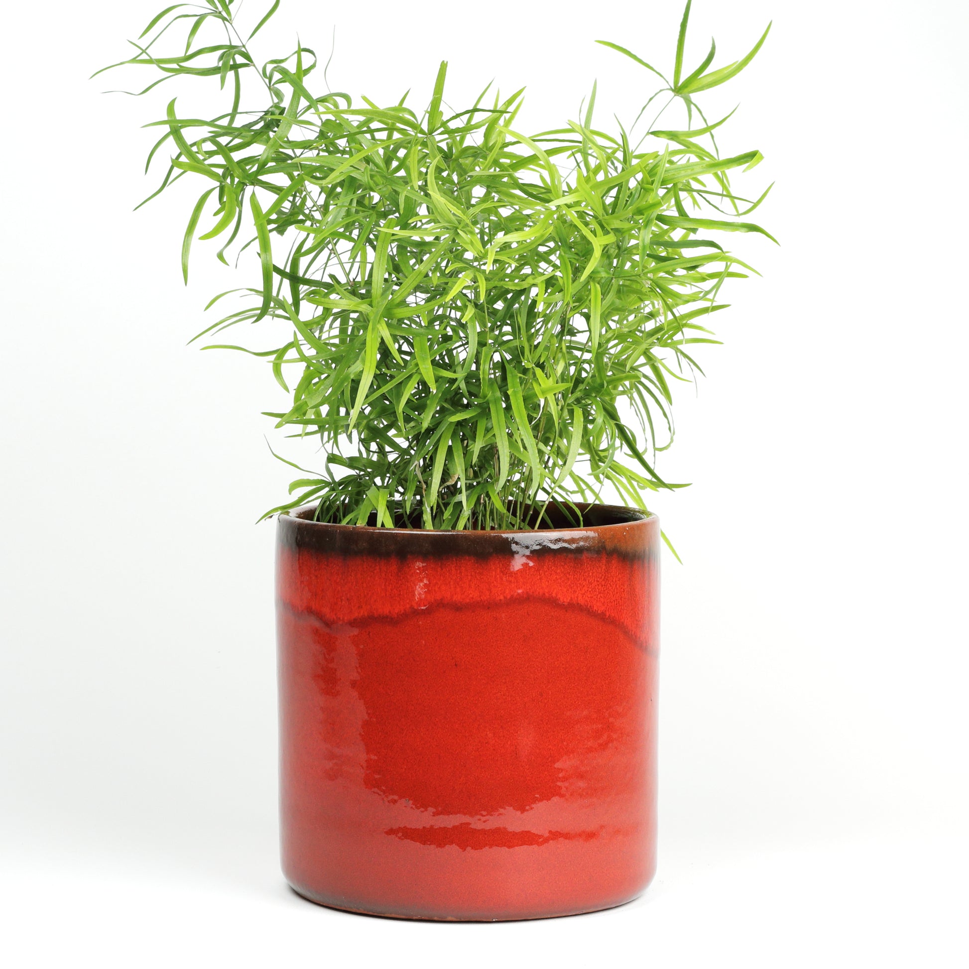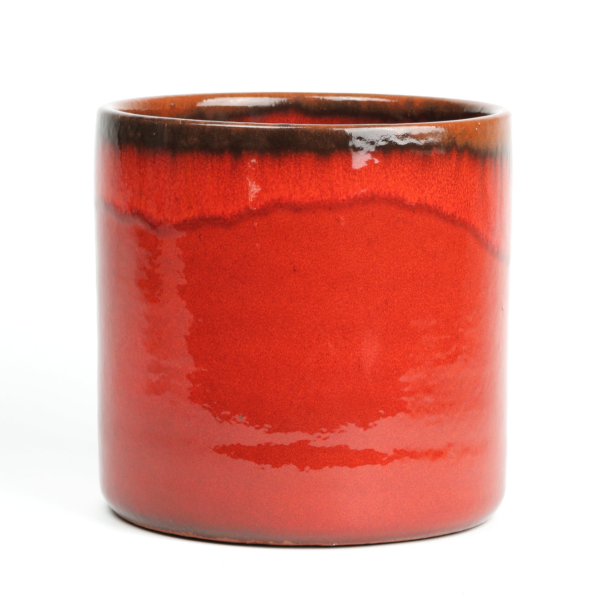 A lovely fiery plant pot, the perfect colour pop for any interior. Hand thrown in a cylindrical shape, with thick walls, these sturdy pieces will stand the test of time. Glazed in a vibrant red base, with a black rim, the contrast is beautifully playful. Handmade in Portugal. Sealed, no drainage holes. Available in three sizes.