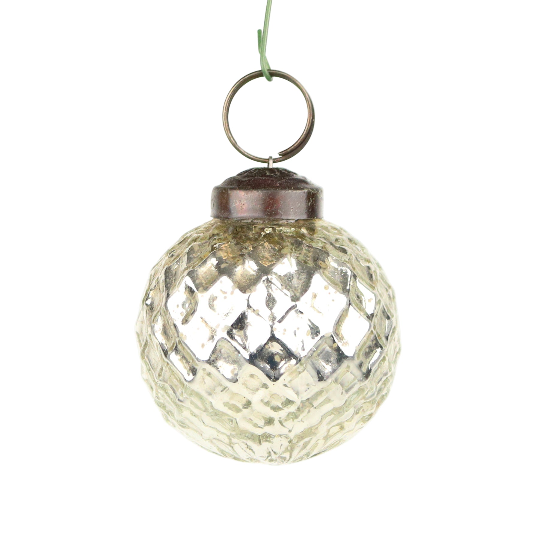 This bauble's refined silver finish adds a touch of sophistication, making it an exquisite choice for both modern and classic festive settings. Perfect for adding a timeless shimmer to your holiday arrangements. Handmade, each piece is unique.