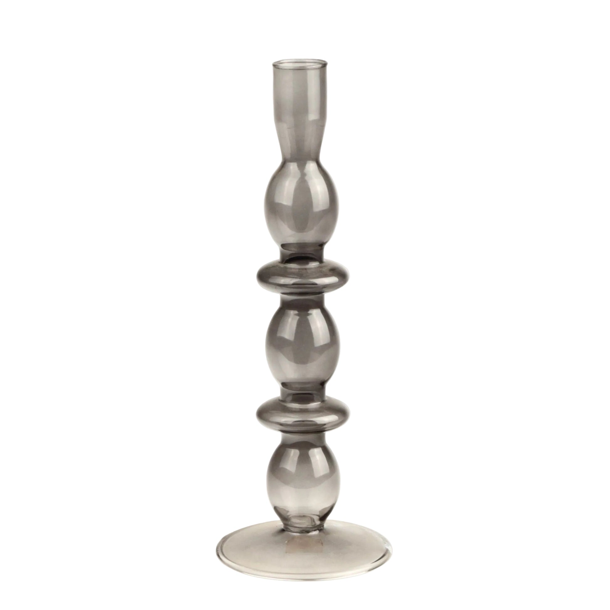 Crafted from quality glass, this candlestick softens light beautifully, creating an inviting ambiance in any room. The tiered structure accommodates standard candles and works as a striking standalone piece or part of a curated display. Handmade, each piece is unique.