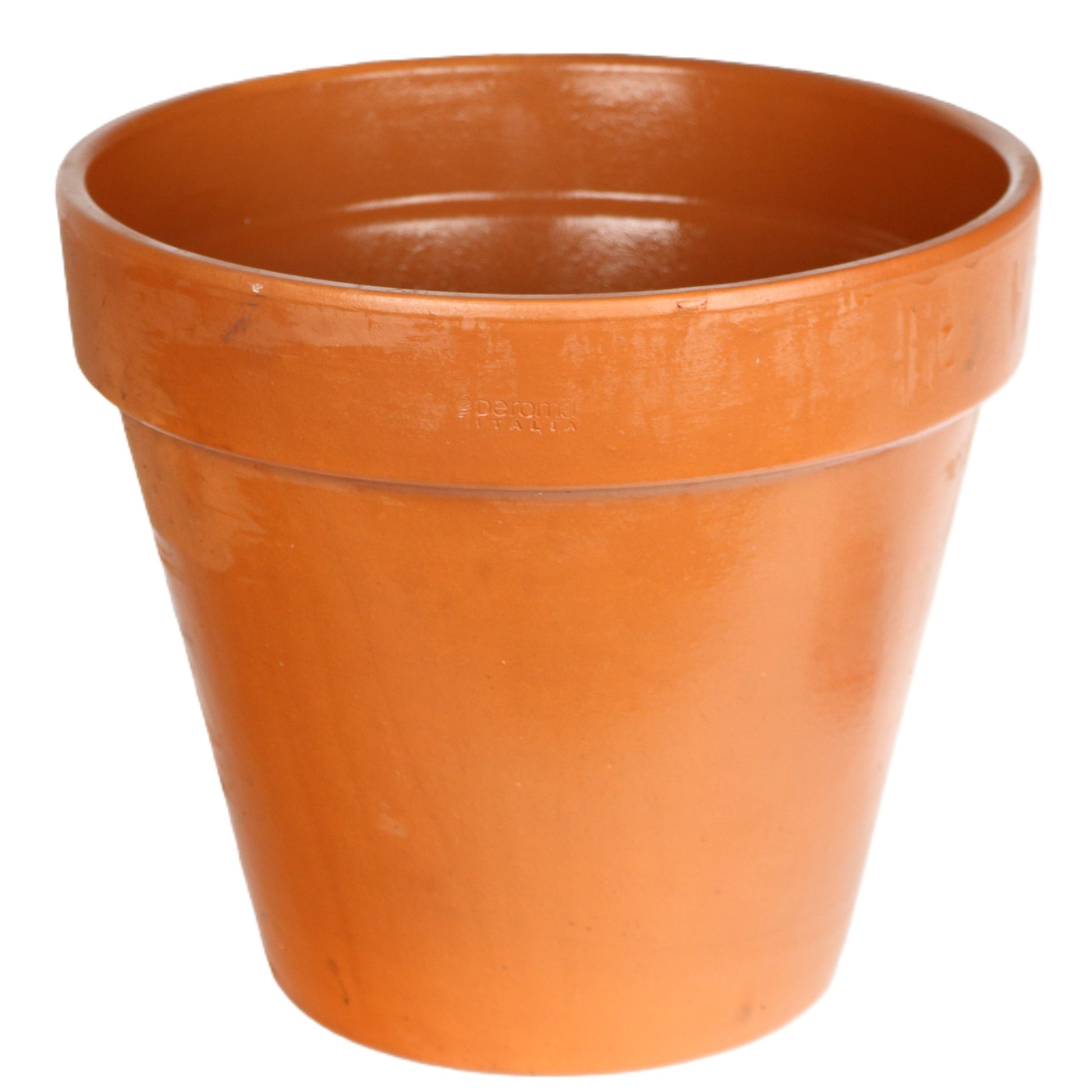 Terracotta plant pot with a drainage hole in a conic shape. Suitable for outdoor use, or indoor use with a saucer.
