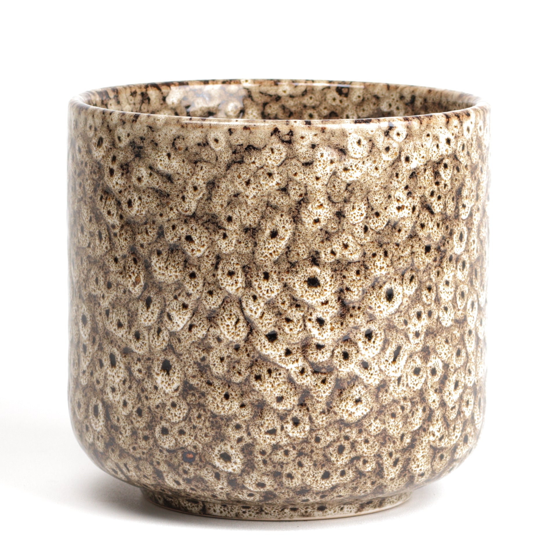Inspired by the delicate clusters of frogspawn, this striking cylinder planter features an intricate spotted pattern that brings organic elegance to any interior. The generous proportions provide ample space for substantial plants, whilst the contemporary cylindrical form complements both modern and eclectic décor schemes. Handmade, each piece is unique. Sealed, no drainage holes. Available in two sizes.