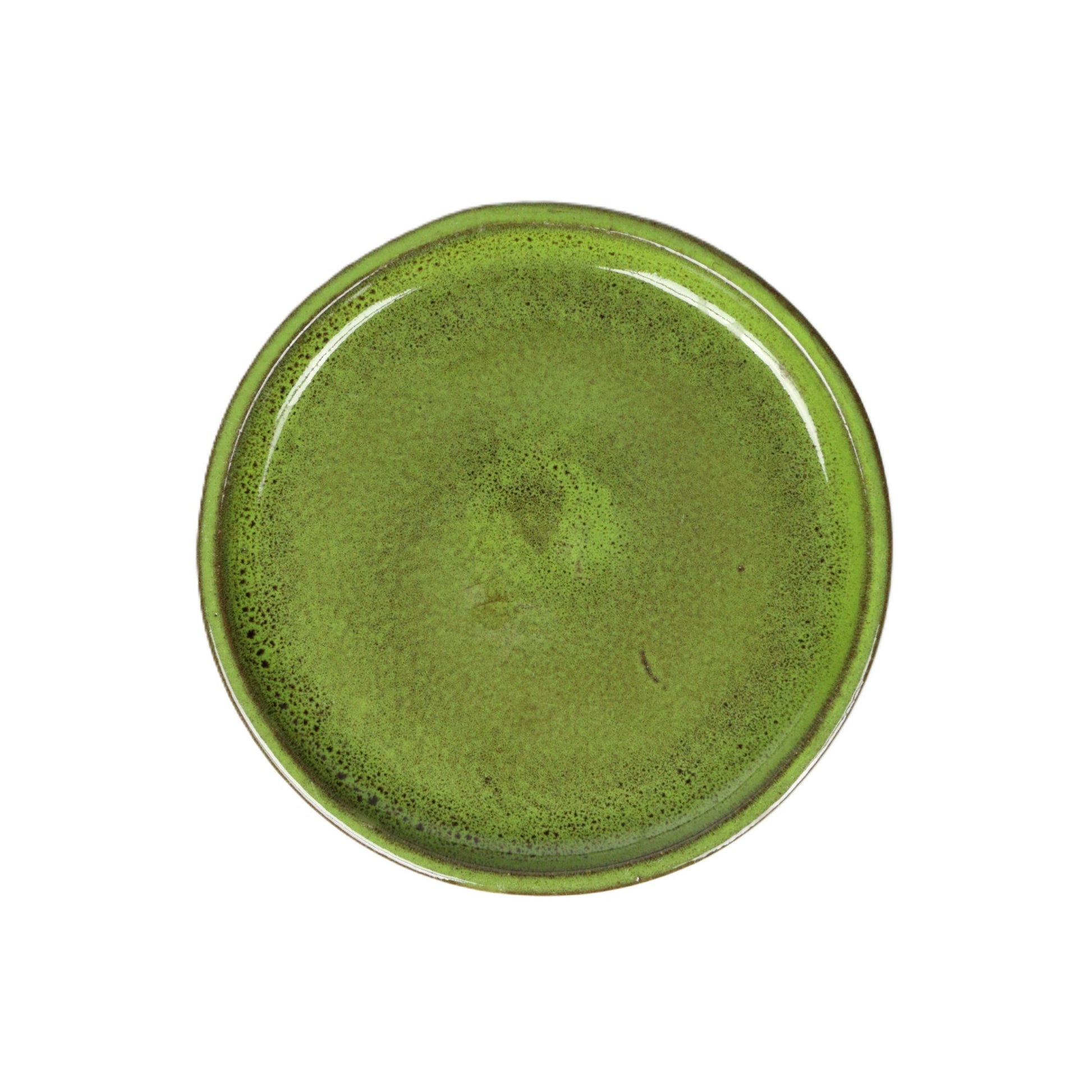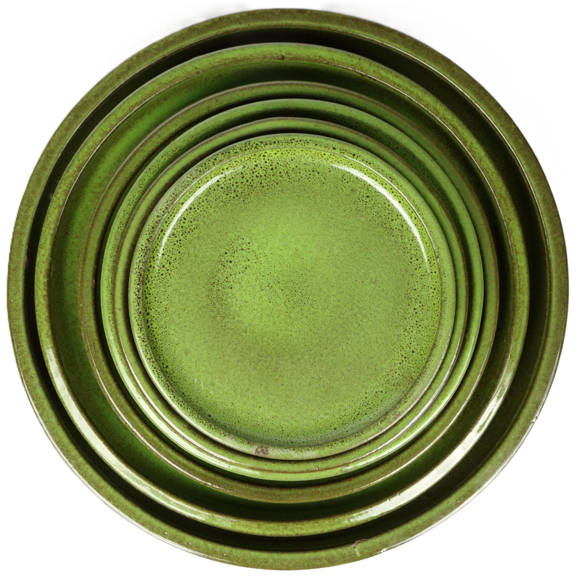 Ceramic saucer perfect for use with pots with drainage holes. Waterproof glazed in a deep olive green.