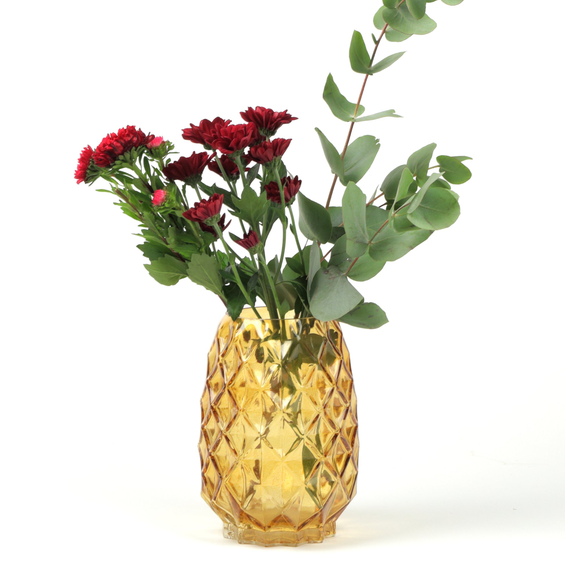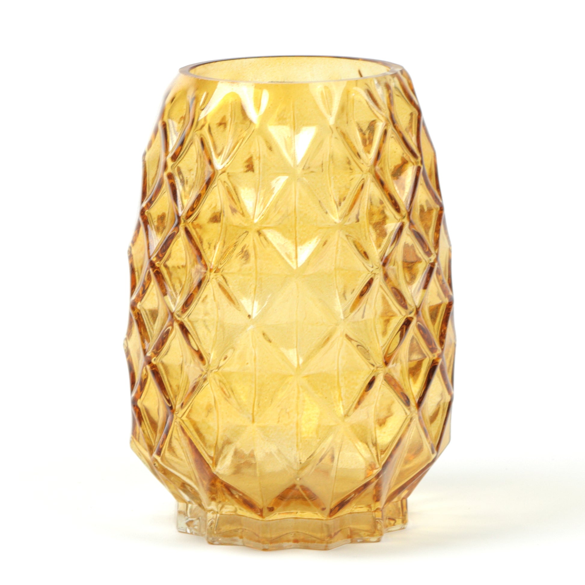 Elevate your floral displays with this striking glass vase, featuring an intricate pineapple like texture that catches the light beautifully. The sculptural surface adds visual interest and tactile appeal, making it a statement piece whether filled with fresh blooms or displayed empty. Its refined form complements both contemporary and classic interiors, bringing an unexpected botanical elegance to any room. Handmade, each piece is unique.